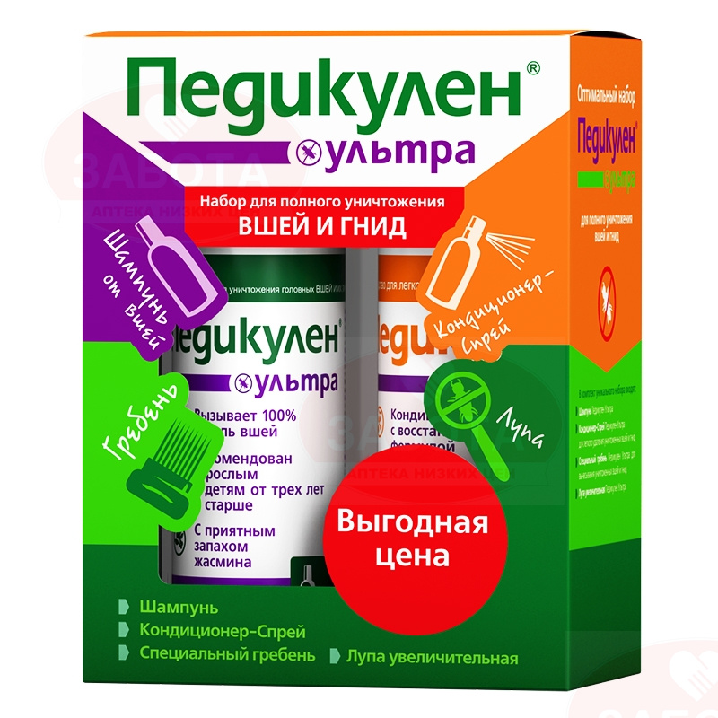 > > > > Педикулен Ультра набор(шампунь, кондиционер, гребень, лупа)
